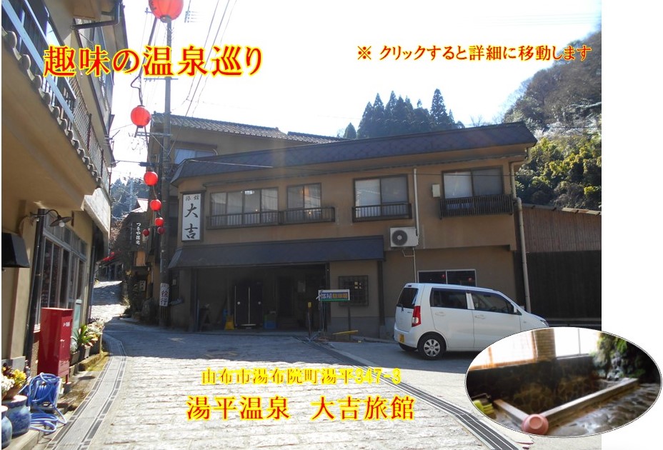 湯布院温泉郷 湯平温泉 / 由布市 湯布院温泉 / By 大分県の温泉めぐり 山城屋 旅館 いづもや 大吉旅館 志美津旅館 癒しの宿 鷹勝 花合野 都屋 山荘 松屋 高尾荘 白雲荘 上柳屋 暁雲荘 花木綿 旅館まるや やまとや旅館 宿寮 ばん屋 奥ゆのひら 花あかり 中の湯温泉 橋本温泉 金の湯温泉 銀の湯温泉 湯布院温泉エリア 温泉マップ ⇓ 画像をクリックすると 詳細から目的地を検索できます。 ⇓