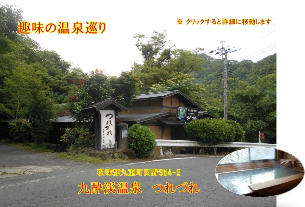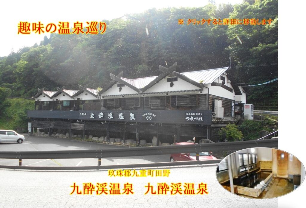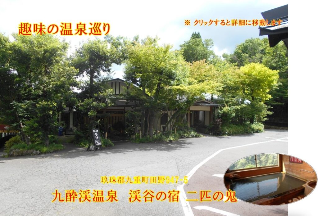 / 九重玖珠 / By 大分県の温泉めぐり 作成中です。クリックしても詳細にリンクできません。 九酔渓温泉 渓谷の宿 二匹の鬼 九酔渓温泉 つれづれ 九酔渓温泉 筌ノ口温泉 山里の湯 筌ノ口温泉 旅館 新清館 筌ノ口温泉 共同浴場 馬子草温泉 ペンション草原の風